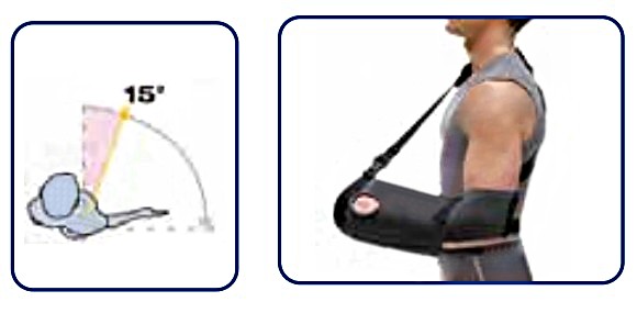 - Immobilizzazione della spalla a 15° in extrarotazione