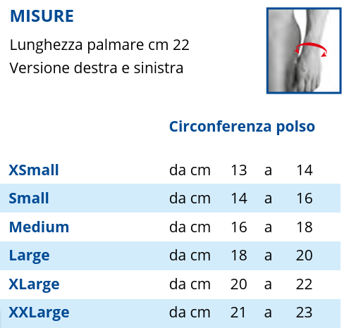 Ortesi corta per polso con rinforzo palmare/dorsale/ulnare