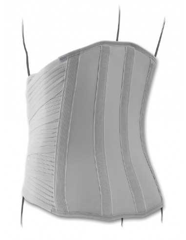 - Parte lombare sostenuta da stecche flessibili integrate nella fascia (possibilità di inserire stecche più dure per aumentare la rigidezza del corsetto).